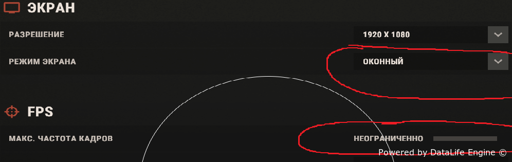 Заходим в настройки экрана игры ставим режим экрана оконный и частота кадров убираем на 0 и жмем применить, потом можно перейти в полноэкранный режим нажатием клавиш двух ALT и Enter и также вернуться в оконный если нужно
