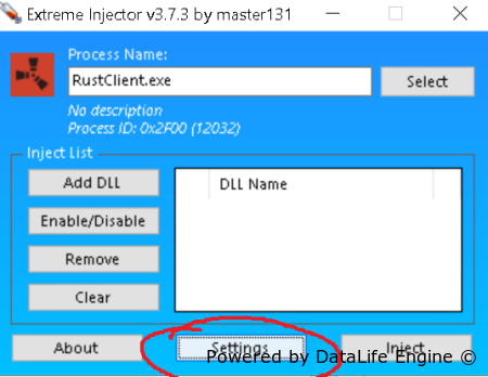 Все раст запущен экстрим иньектор запущен и настроен мы находимся в влавном меню игры раст на сервера зайдем позже все жмем в экстриме кнопку Inject ожидаем успеха