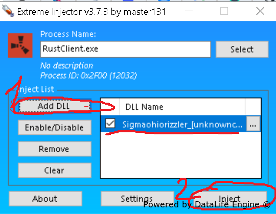 Далее в окне программы нажимаем Add Dll и выбираем наш чит dll